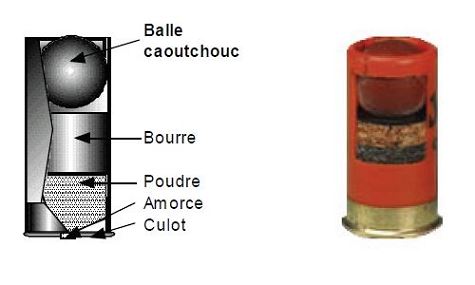 La balle caoutchouc peut provoquer des fractures (tibia, clavicule, côtes). Employée à moins de 3 mètres, elle peut provoquer de graves blessures. Elle est une munition moins chargée que la Mini Balle Gomm-Cogne® « Slug Protection », ce qui en fait une cartouche parfaitement adaptée à l’autodéfense domiciliaire et un complément intéressant de la munition Fun Tir, destinée à l’entraînement. Cartouche de neutralisation individuelle non-létale, courte distance, destinée à neutraliser un individu choisi entre 5 et 10 m.