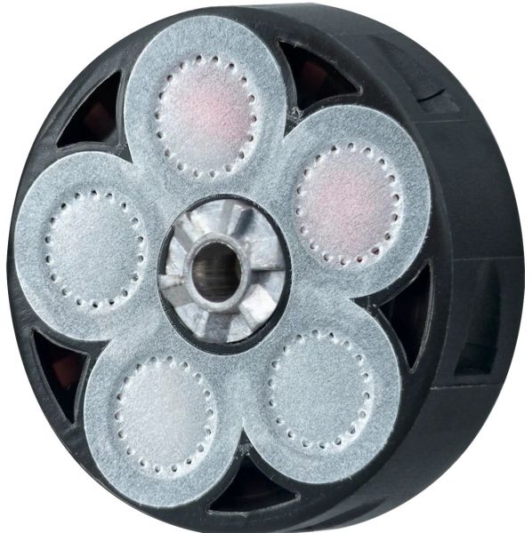 Le barillet d'urgence prêt à l'emploi est préchargé avec 3 billes de poivre et 2 billes en caoutchouc, disposées en alternance pour une efficacité maximale grâce au tir combiné. Sa double membrane de sécurité perforée permet un transport sûr et une manipulation rapide en cas d'urgence.