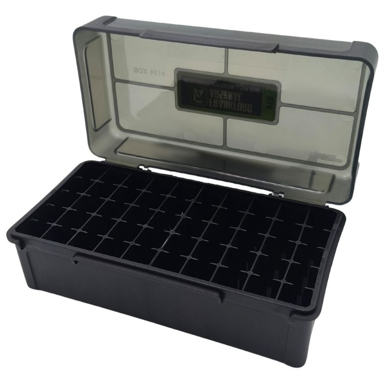 En stock, expédié sous 12/24h boite de bonne fabrication: charnière solide et couvercle translucide (suffisamment pour voir ce qui y reste...) Une petite couche de mousse de 5mm d'épaisseur assurera le maintien parfait du calibre 45/70Gvt.