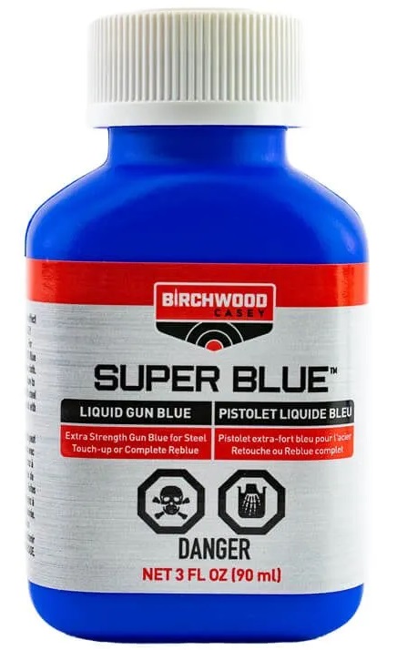 Birchwood Casey Super Blue restaure rapidement les zones en acier rayées et endommagées.