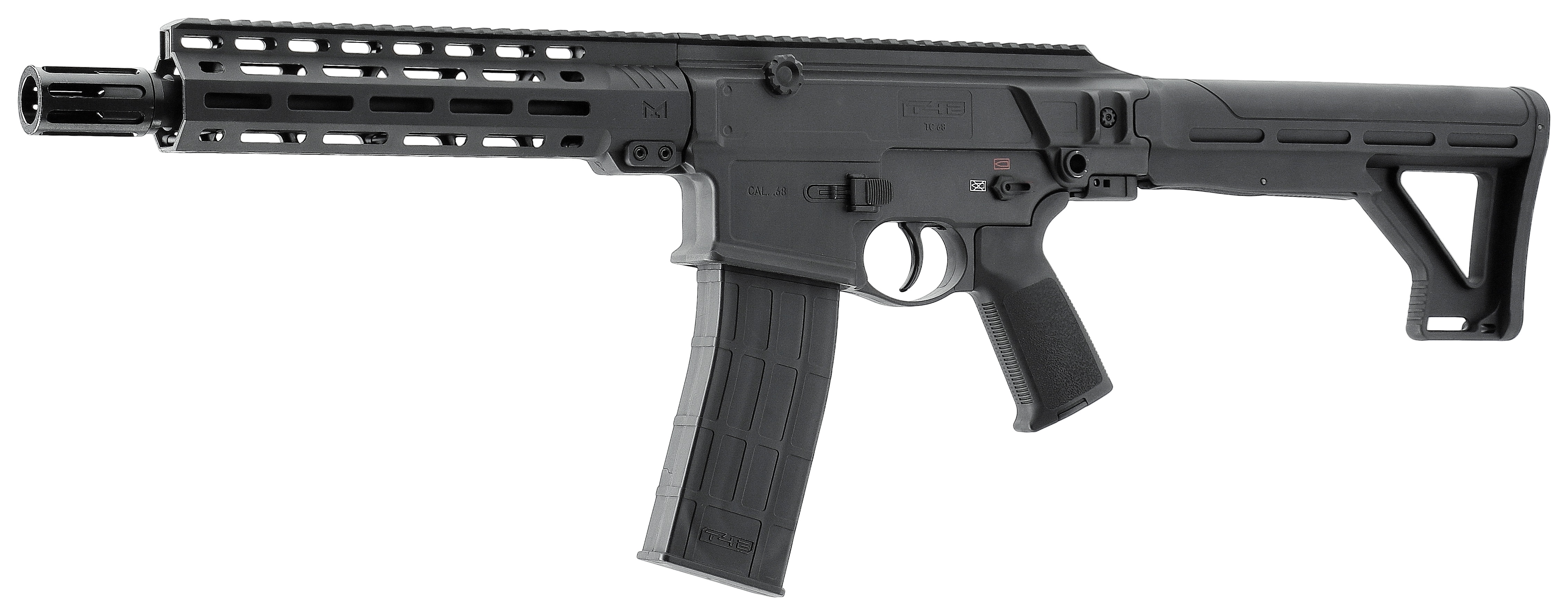 Le canon fileté Cocker permet l'installation de canons de personnalisation, et la poignée style AR assure une compatibilité avec de nombreux accessoires.
