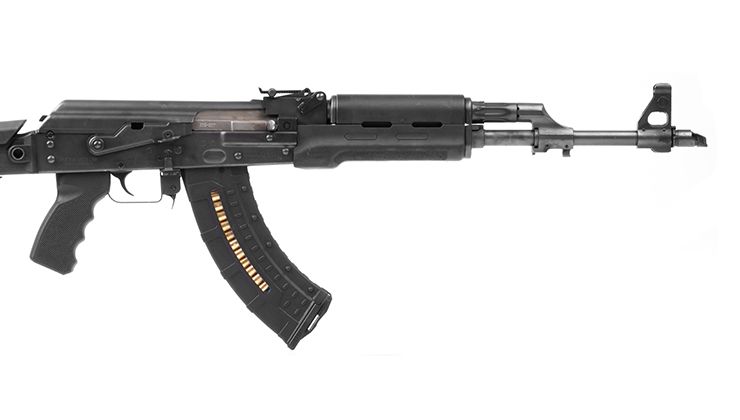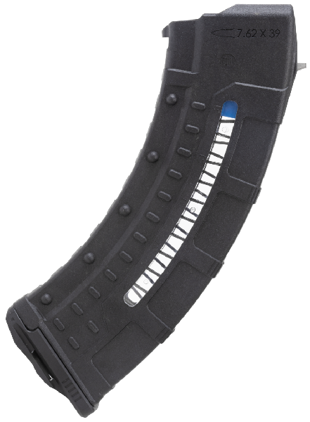 Chargeur en polymère avec structure ressort en acier pour fusils type AK47/AKM chambrés en 7.62x39mm Nato.