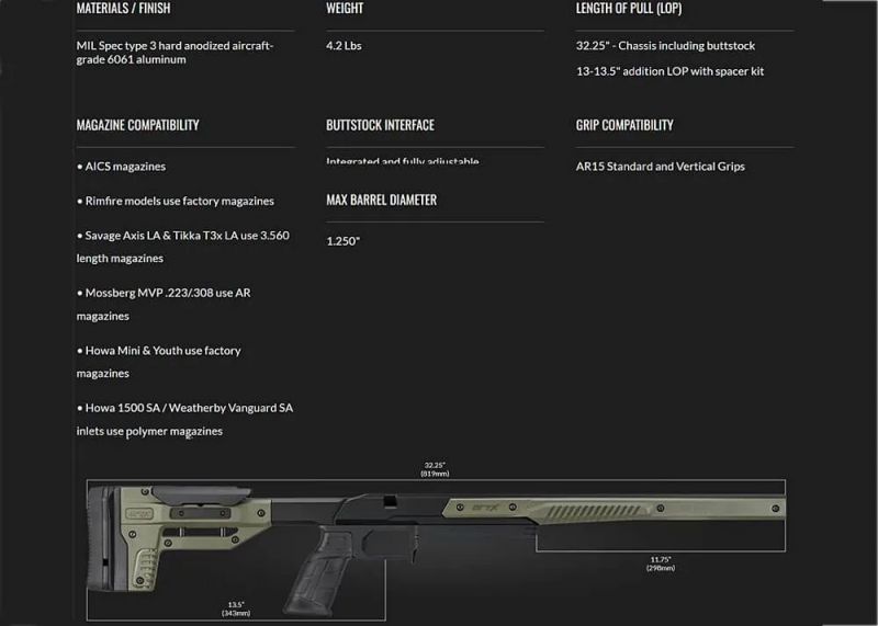 Chassis MDT ORYX GRIS pour carabine CZ 457