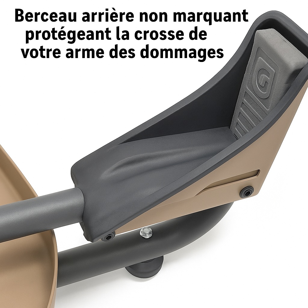 - Utiliser un sac arrière réglable (rear bag) pour soutenir la crosse sans surpression.