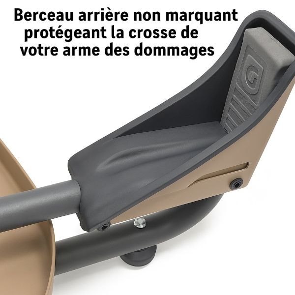 - Centrer l’arme dans le cradle (chaine support avant) de façon neutre, sans contrainte latérale.