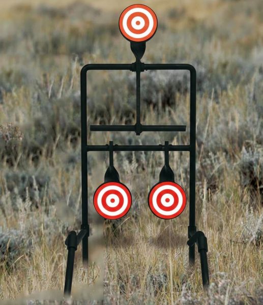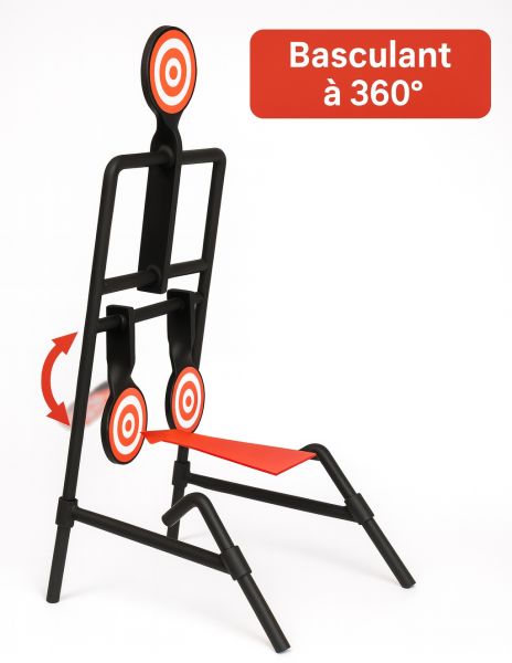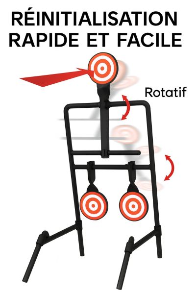 Matière HARDOX 500 (AR500) Nombre de gong : 3 gong ronds Épaisseur du gong : 10 mm Conçue pour les calibres du 22Lr au 44 Magnum - 223 Rem - 5,56x45 - 308 win - 300 Win Mag Matériau : Acier trempé AR500 (très haute résistance aux impacts) Finition : noir et peinture haute visibilité du gong Fonctionnement : Les 2 gongs du bas basculent en arrière et sont remis dans leur position initiale par le tir dans le gong du haut. Fixation : fixer dans le sol Mécanisme de rotation soigné assurant une réponse fluide à l’impact Système équilibré pour une remise en position rapide Structure robuste permettant de supporter des milliers de tirs sans détérioration prématurée