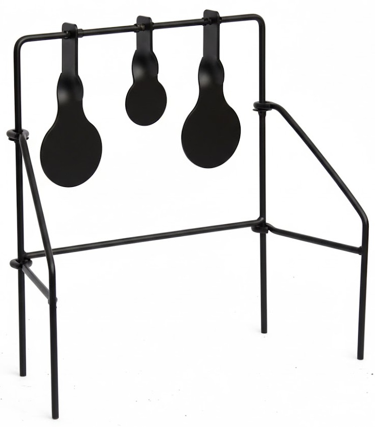 Matière : Acier durci Nombre de gong : 3 gong ronds (3 diamètres différents pour corser le niveau de difficulté) Épaisseur du gong : 5 mm Finition : noir et peinture haute visibilité du gong Fonctionnement : gongs basculants Fixation : fixer dans le sol Mécanisme de rotation soigné assurant une réponse fluide à l’impact Système équilibré pour une remise en position rapide Structure robuste permettant de supporter des milliers de tirs sans détérioration prématurée