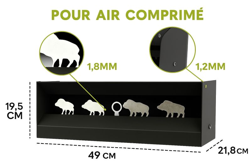 Cible métallique robuste conçue pour la pratique du tir à l’air comprimé (calibres 4,5 mm & 5,5 mm).