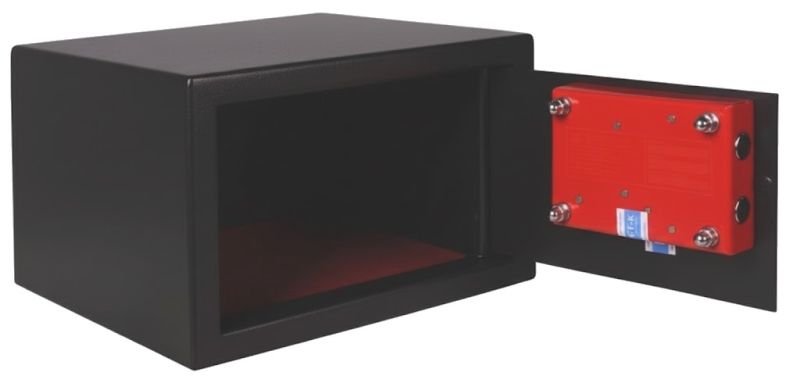 Bon petit coffre suffisamment grand pour y loger une arme de poing et deux boîtes de munitions. Serrure fonctionnelle et de bonne qualité. Le fond vertical ainsi que l'horizontal de la tôle du coffre ont été légèrement prédécoupés et il suffit de pousser vigoureusement sur ces prédécoupes avec un tournevis pour dégager des trous qui permettent de fixer facilement le coffre au sol ou au mur. Pour le prix, rien à dire, que du positif. Envoi rapide et soigné. Très satisfait de mon achat.