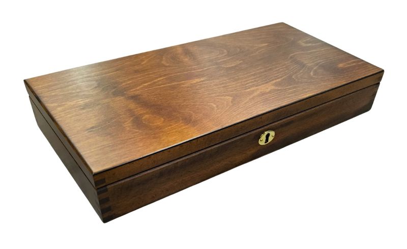 Magnifique coffret qui met en valeur mon revolver navy ainsi que la poire à poudre laiton.