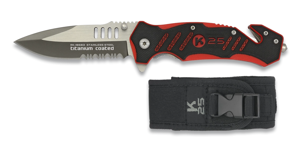 Couteau pliant K25 Tactical Knife G10 Noir/Rouge Lame 8,8cm