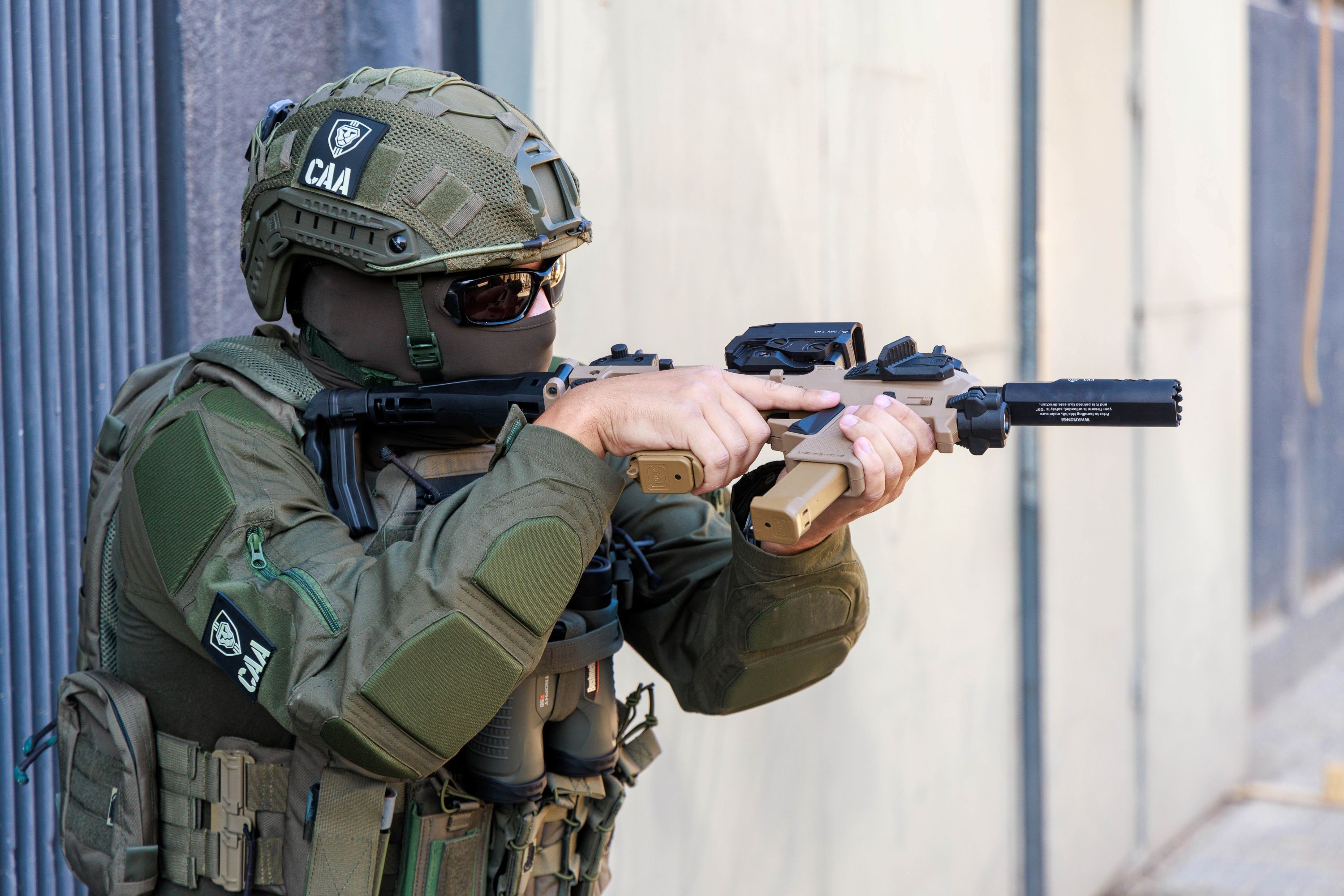 Améliorez la stabilité et la précision de votre Glock avec la crosse RONI Gen.4X SWAT en finition désert, une référence de performance signée CAA.