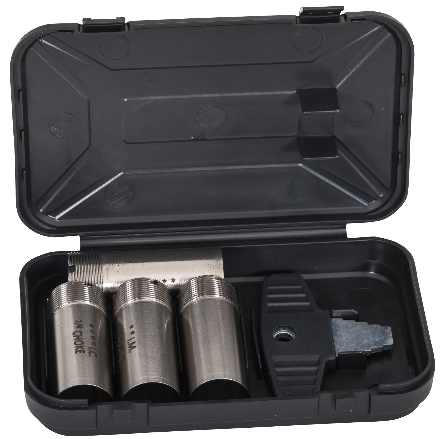 Fonctionnement semi automatique par emprunt de gaz avec capacité de 5+1 coups Canon lisse chromé 18,5'' avec chokes interchangeables Cache flamme