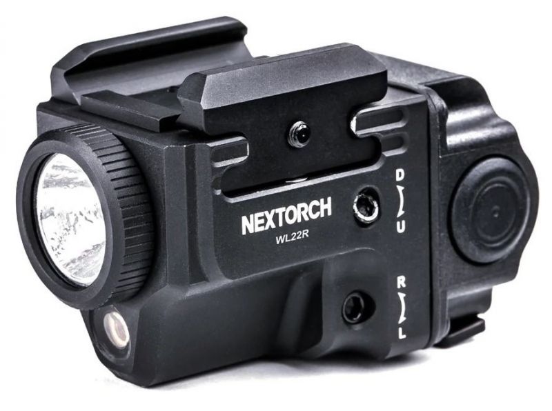 Le NEXTORCH WL22R est un dispositif compact combinant une lampe blanche de 650 lumens et un pointeur laser rouge <5 mW. Il dispose d’un système de montage breveté pour une fixation rapide et solide sur rails Picatinny et rails de type Glock. Commandes ambidextres par doubles interrupteurs latéraux avec fonction mémoire ; réglages de windage et elevation pour l’alignement du laser. Batterie intégrée 250 mAh rechargeable (direct port). Conçu pour une utilisation tactique et le repérage sur arme de poing.
