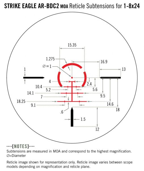 En savoir plus sur Lunette de tir AR15 VORTEX STRIKE EAGLE 1-8x24 ret.AR-BDC3 Moa
