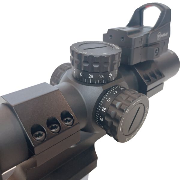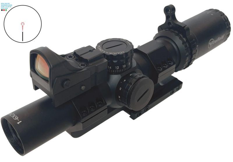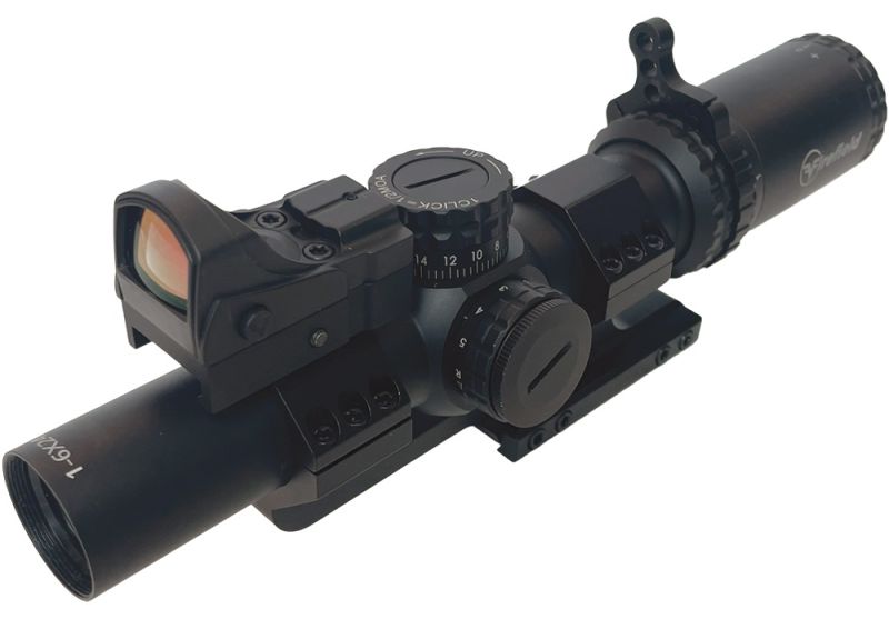 Une lunette multi-usage 1-6×24, avec viseur red dot sight, conçue pour les engagements rapides à courte et moyenne distance, fiable même en conditions extrêmes.