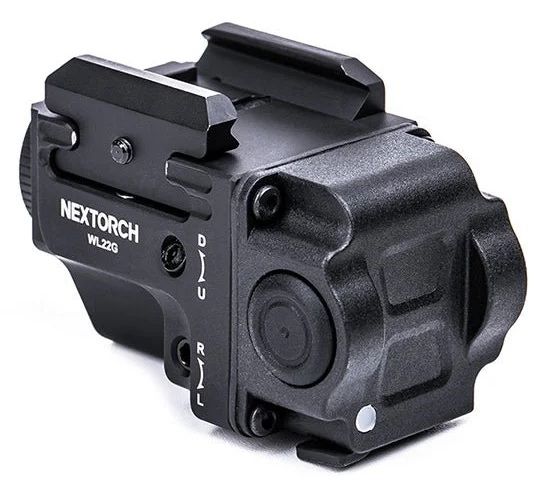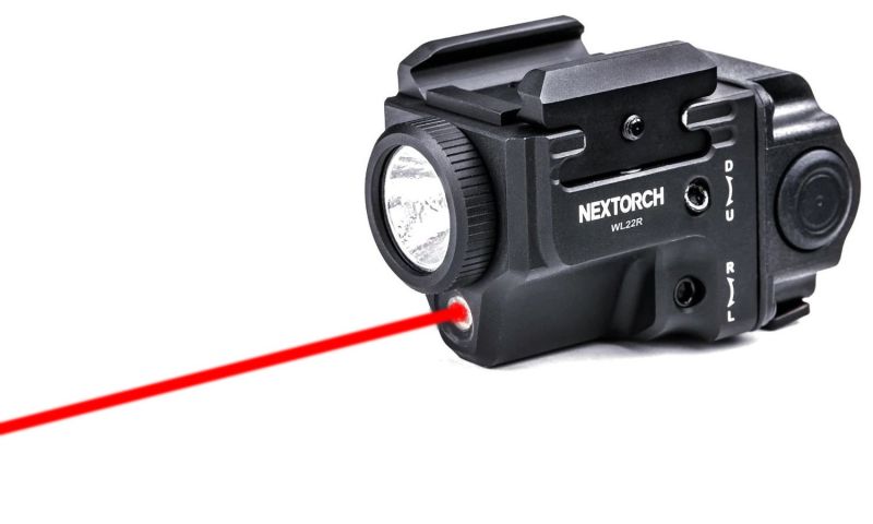 Le NEXTORCH WL22R est un dispositif compact combinant une lampe blanche de 650 lumens et un pointeur laser rouge <5 mW. Il dispose d’un système de montage breveté pour une fixation rapide et solide sur rails Picatinny et rails de type Glock.