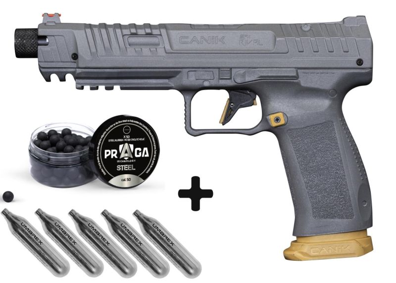 1 x Pistolet à balle caoutchouc CANIK SFX RIVAL Silver/Gold cal.50 (18 joules)