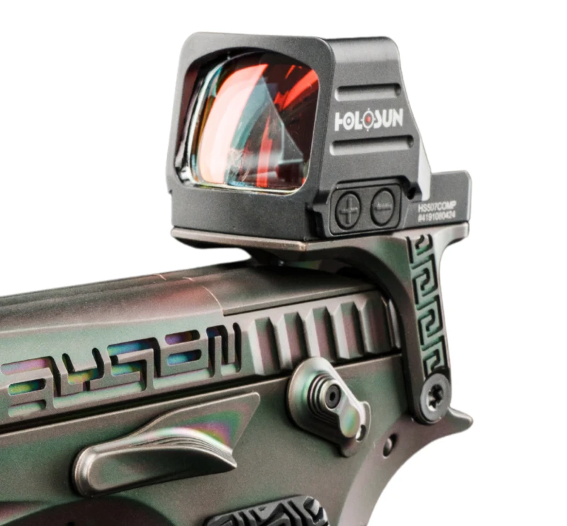 Le pistolet est également conçu en configuration Optic Ready avec une empreinte compatible RMSc. Cette configuration permet le montage direct de certains micro points rouges sans modification de l’arme.