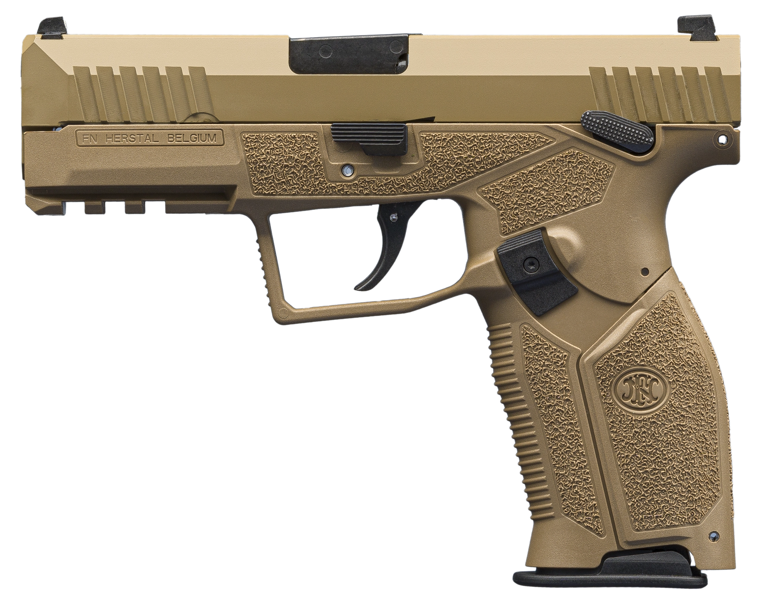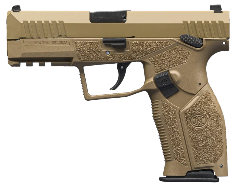 Un pistolet semi-automatique 9 mm moderne combinant ergonomie supérieure, fiabilité extrême et sécurité optimale, issu de l’ingénierie belge FN Herstal — référence des forces armées et forces de l’ordre.