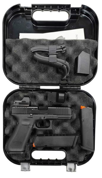 Livré dans une mallette ABS GLOCK avec 2 dos de poignée, 2 chargeurs et équipée d'un point rouge KITE K1