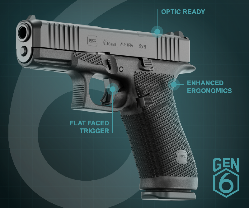 Design entièrement repensé, nouvelle texture, prise en main boostée par le grip RTF6, ergonomie modernisée et surtout un système de montage d’optique révolutionnaire, pensé pour offrir une intégration plus basse, plus robuste et visuellement impeccable. Pour son lancement, la Gen6 se décline en G17, G19, G45 et G49, répondant ainsi à toutes les morphologies et à tous les usages : défense, tir dynamique, tir de précision ou port discret.