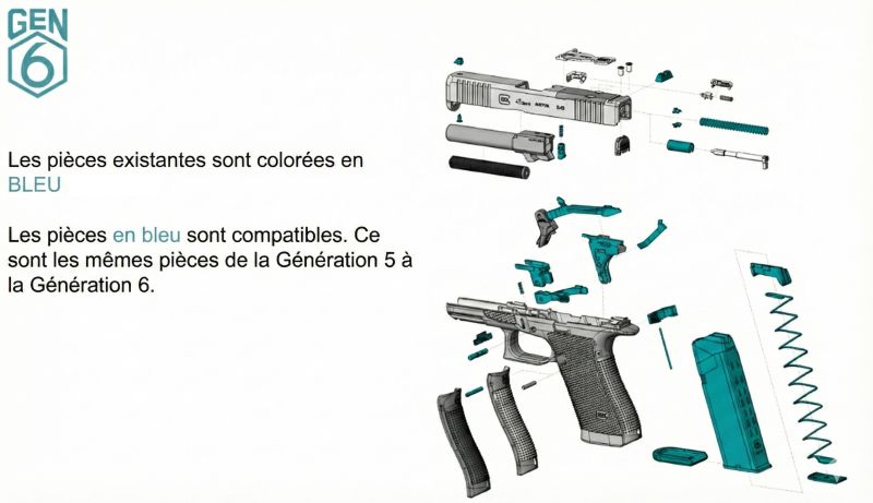 ⚙️ Une mécanique modernisée La détente droite conserve les trois sécurités emblématiques du système Safe Action, tout en proposant une cassure plus nette et un design épuré, typique des dernières évolutions Glock. Un extracteur redessiné libère de l’espace à l’arrière de la culasse afin d’améliorer l’intégration des optiques.