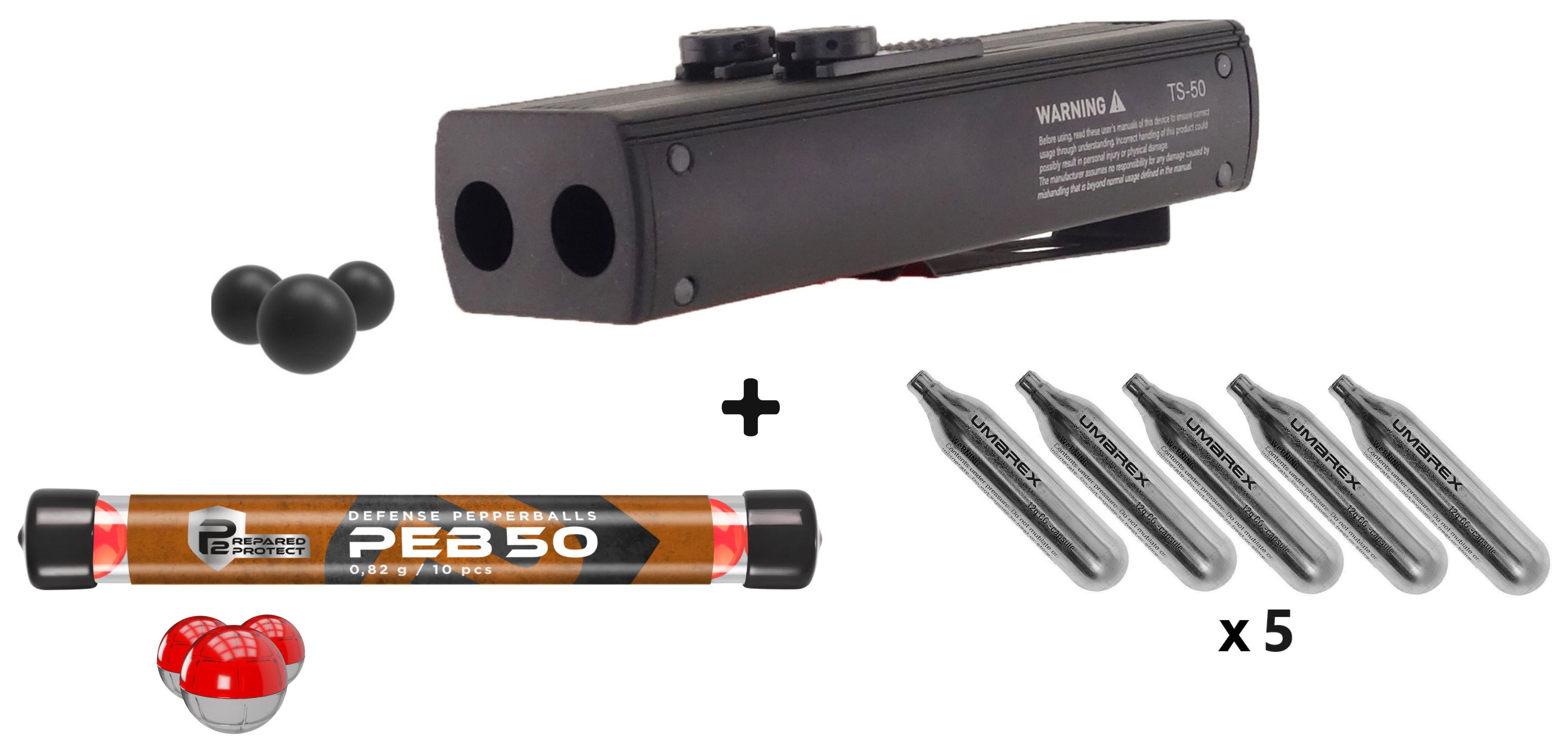Compact et puissant : Propulseur de billes en caoutchouc cal.50, CO₂ deux coups, conçu pour une riposte immédiate et une portabilité discrète.