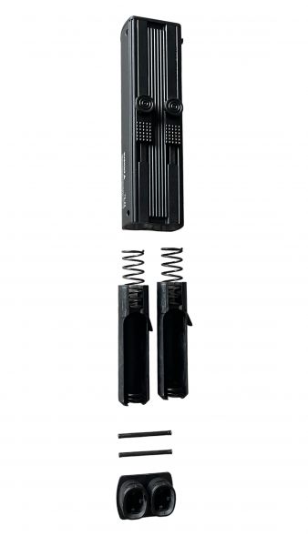 L'arme est propulsée par 2 cartouche de CO2 de 12g (vendue séparément) qui se loge directement dans la poignée ergonomique.