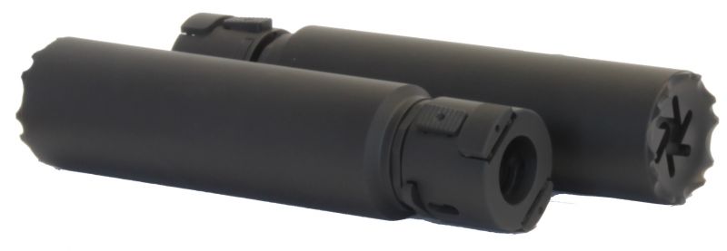 Modérateur version Short et efficace doté de la technologie double flux. Réduction améliorée du bruit, de la flamme de bouche et du décalage du point d'impact. 5 % d'augmentation de la pression arrière par rapport aux 20-50 % des modérateurs traditionnels.