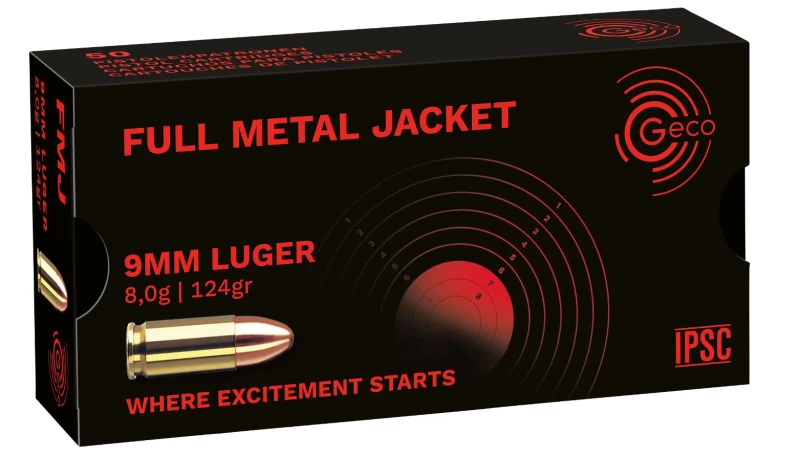 En stock, expédié sous 12/24h GECO cal.9mm PARA FMJ /Caisse OLIVE 500 cartouches