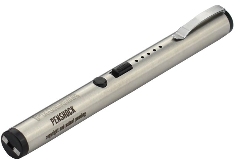 Le PENSHOCK (réf. PESH) est un shocker électrique au format « stylo » signé PIRANHA. Son corps cylindrique en acier inoxydable (finition métal) de seulement 156 mm de long et 15 mm de diamètre facilite le transport et l’utilisation discrète.