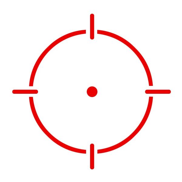 Multi-réticule rouge : Cercle de 65MOA et 2MOA ou point de 2MOA ou cercle de 65MOA