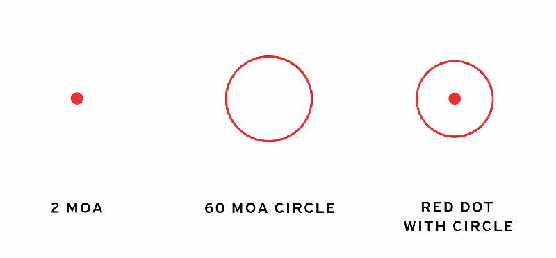 Point rouge (2 MOA), Circle dot (60 MOA), Point rouge + Circle dot